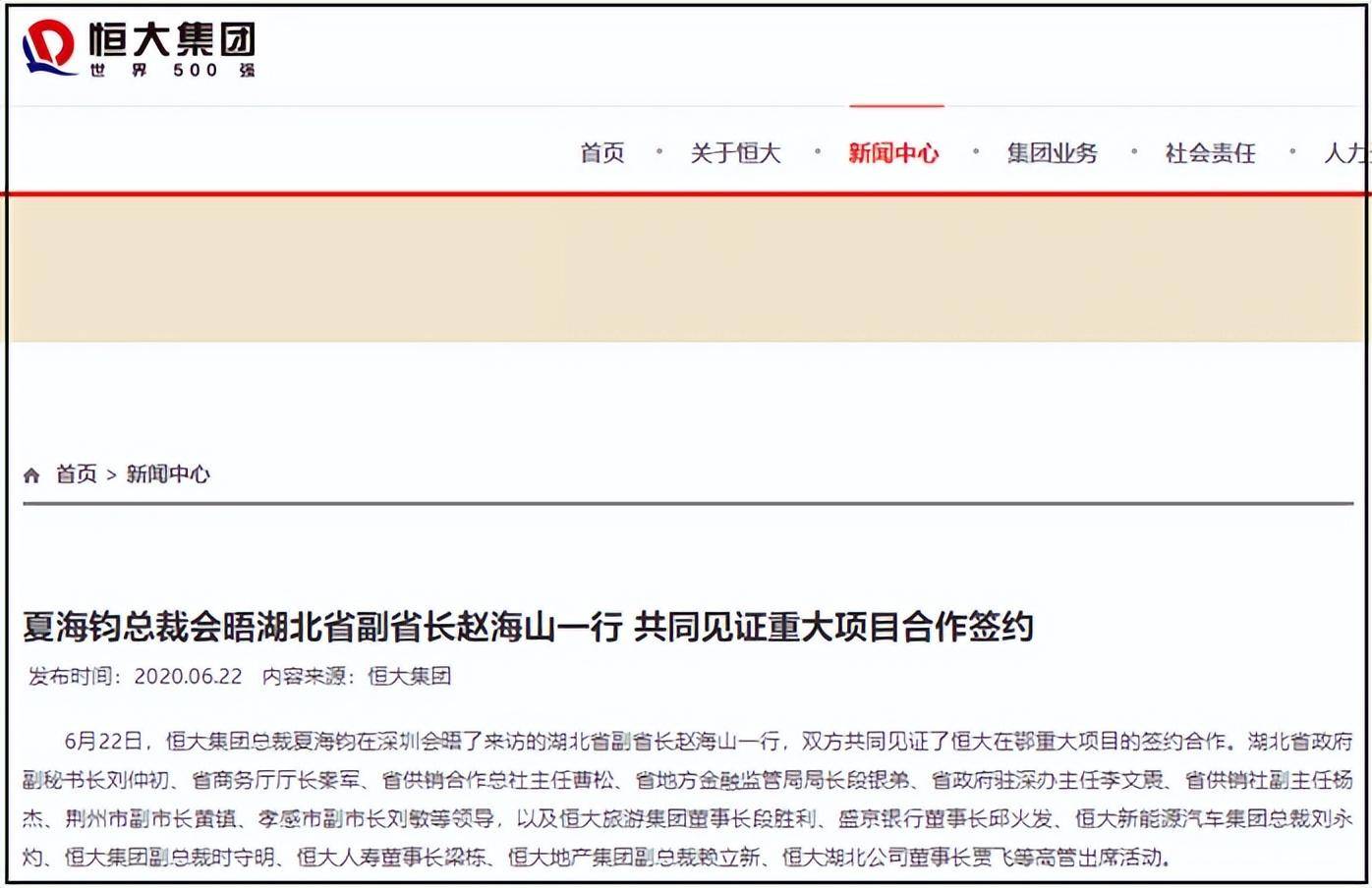 2020年6月,恒大集团官网发布的《夏海钧总裁会晤湖北省副省长赵海山一行 共同见证重大项目合作签约》一文显示:盛京银行董事长邱火发出席恒大集团与湖北政府签约仪式,足以看出恒大集团与邱火发的亲密关系。