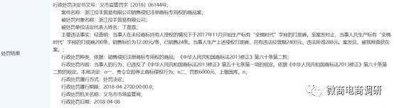 顺带一提,就在上述处罚发生一年前,拉手贸易公司还曾遭到过义乌市市场监管局的行政处罚(行政处罚决定书文号:义市监管罚字〔2018〕06144号),据“浙江拉手贸易有限公司销售侵犯注册商标专用权的商品案”显示,经查明,当事人在未经商标持有人授权的情况下于2017年11月开始生产标有“全棉时代”字样的打底裤。当事人的行为已违反了我国《商标法2013修正》第五十七条第一项的规定。