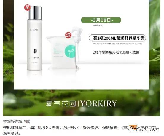 在官方公众号的包装下,存在虚假宣传问题的化妆品还包括“YORKIRY嫩肤洁面乳”在内,这款产品被相关文章指出具有美白作用。