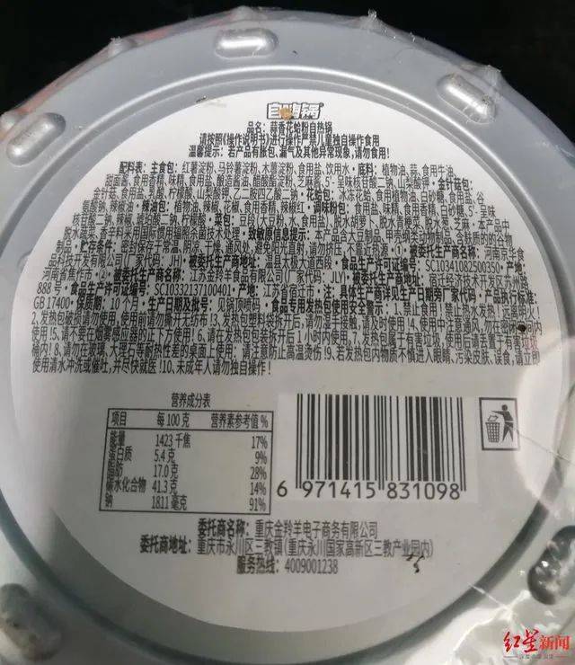 红星新闻记者采访了解到,事发后,凉山州会东县公安局、市场监督管理局等多部门介入调查。在陈晨家中,调查人员发现一盒包装完好的“自嗨锅蒜香花蛤粉”及其购买的包装箱,和一盒已经被吃完的自嗨锅,执法人员进行了封存。
