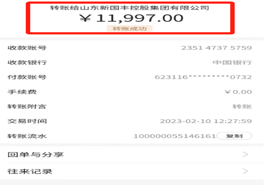 山东新国丰控股集团有限公司转账记录