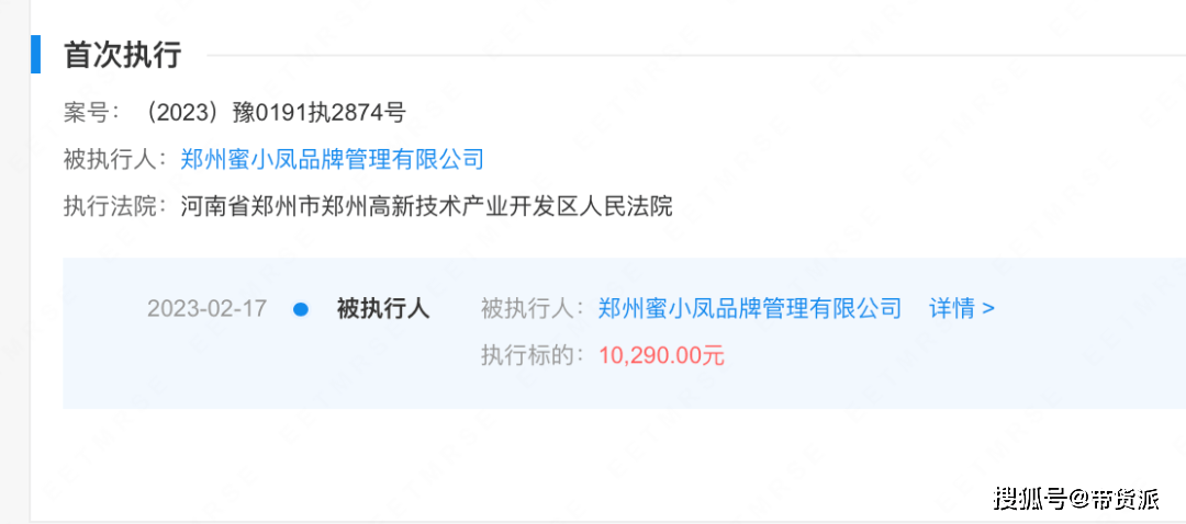 近日,美商社注意到,郑州蜜小凤品牌管理有限公司被河南省郑州市郑州高新技术产业开发区人民法院列为了被执行人,执行标的为10290元。