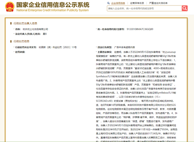 2月7日,杭州市高新技术产业开发区(滨江)市场监督管理局对涉事产品所属的优上公司进行了行政处罚。