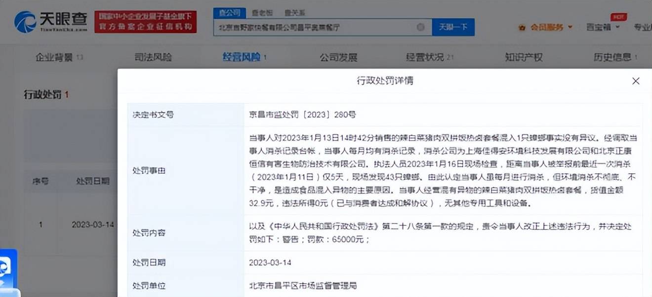据媒体报道,1月13日,吉野家昌平奥莱餐厅销售的辣白菜猪肉双拼饭热卤套餐,混入1只蟑螂,被当事人举报。执法人员1月16日现场检查,又发现43只蟑螂。执法人员认为,吉野家虽每月进行消杀,但环境消杀不彻底、不干净,是造成食品混入异物的主要原因。