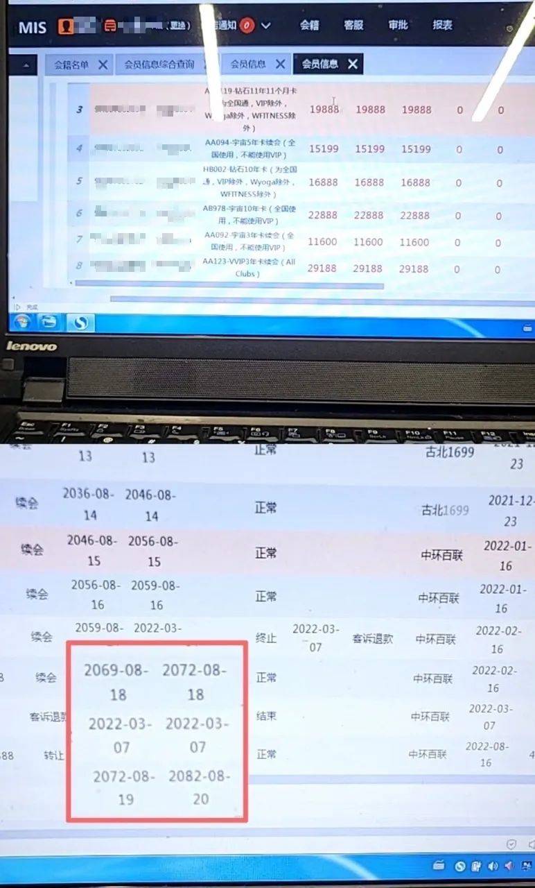 记者从后台系统浏览发现,有大量会员持有多份长期会籍合同,有会员的会籍有效期延续至2082年。