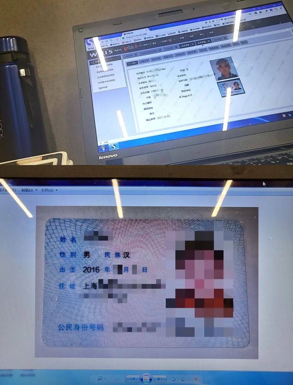 销售人员和健身教练共用的小办公室里,两侧沿墙共排列了十余个格子间工位,销售人员没有固定工位,日常共享使用5台电脑,其中有3台登录的是该公司一孙姓总监的后台系统账户,其账户权限可以直接查看包含尚未开业门店在内的全国所有门店信息,如用户资料、门店流水业绩等。同时,所有会员的个人身份证、护照等有效证件正面照,甚至学龄前儿童的身份证、户口本相关页等信息,在后台也一览无遗。