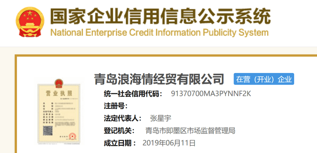 据国家企业信用信息公示系统显示,东方甄选南美白虾供应商青岛浪海情经贸有限公司成立于2019年6月,法定代表人为张星宇,注册资本100万元,经营范围包括食用农产品零售、水产品批发、水产品零售等,由叶琼琼全资持股。此外,年报信息显示,2019年-2021年浪海情公司多年参保人数为0。