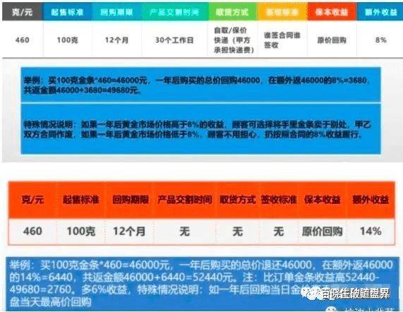 假如你购买了460g金条花了46000元,一年后不仅能返还46000元,还能额外14%的收益,也就是说即便一年后金价跌了,涨了则按照最高价回收,还是稳赚不赔。而幸福年华和九福金樽套路简直是如出一辙, 那两家公司亏着钱也要卖黄金的目的到底是什么呢?