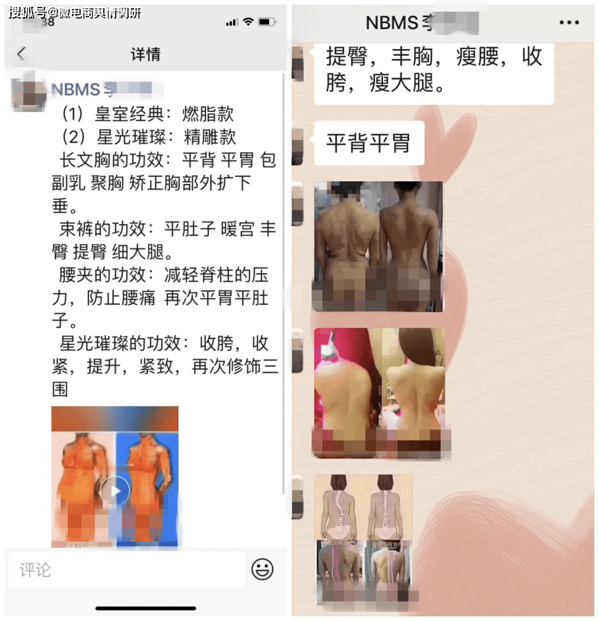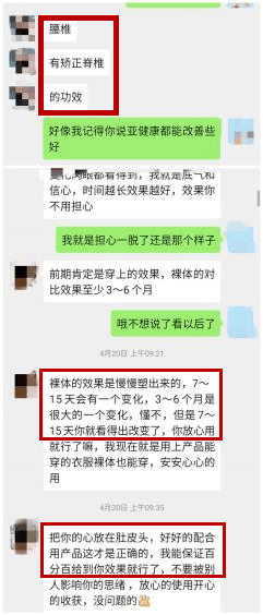 黑牛投诉以了解璐比玛斯内衣为由,联系了璐比玛斯代理商李某。李某同样表示,璐比玛斯内衣有燃脂塑形等功效,并发来大量顾客裸背效果对比照。在李某的朋友圈,有大量璐比玛斯内衣的宣传内容,甚至包括减轻脊椎压力、防止腰痛等功效。