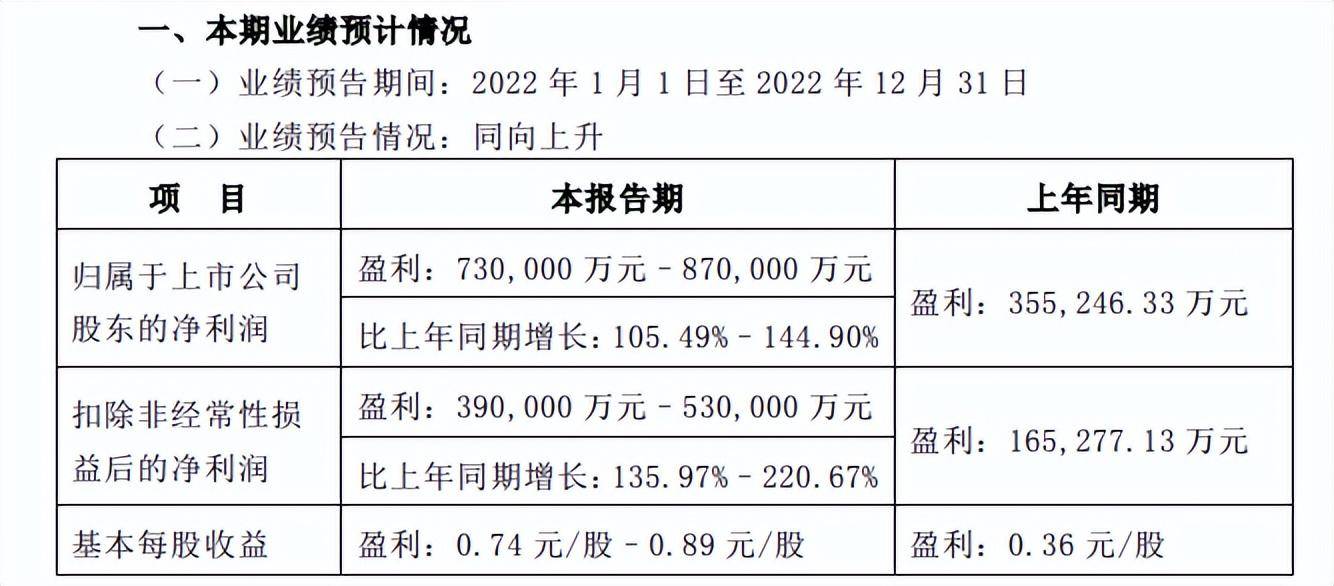 1月31日,长安汽车发布2022年业绩预告,预计2022年实现归母净利润73亿元-87亿元,同比增长105.49%-144.9%;扣非净利润39亿元-53亿元,同比增长135.97%-220.67%。