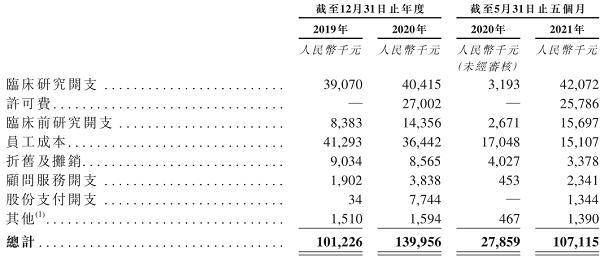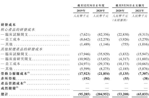 在目前并无产品获批进行商业销售且并无产品销售产生收益的情况下,阿诺医药在招股书中披露,2019年、2020年及2021年5月末,各期亏损额分别为人民币1.23亿元、4.38亿元和0.79亿元,截至各期末总亏损额分别达人民币4.83亿元、8.60亿元和9.16亿元。