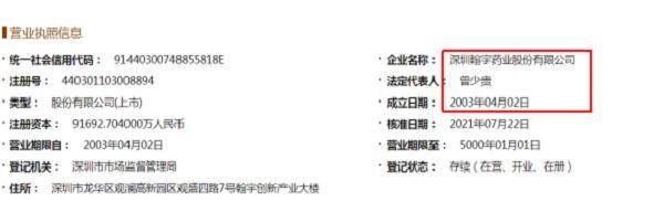 而国家企业信用信息公示系统显示,“深圳瀚宇药业股份有限公司”曾用名为“深圳市翰宇药业有限公司”,成立时间为2003年4月。其官网信息也显示该公司成立时间为2003年4月,比路杨先生和杨东辉先生在该公司的就职起始时间尚晚了约9个月。