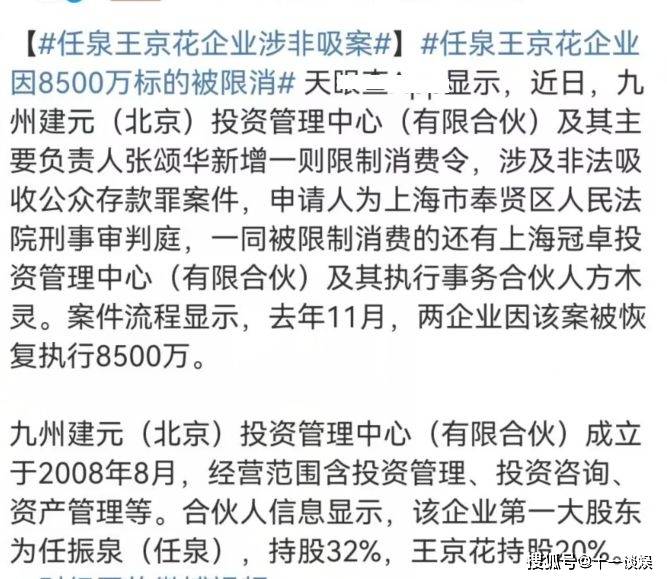 任泉王京花企业涉嫌非吸案:公司负责人张颂华被限制消费
