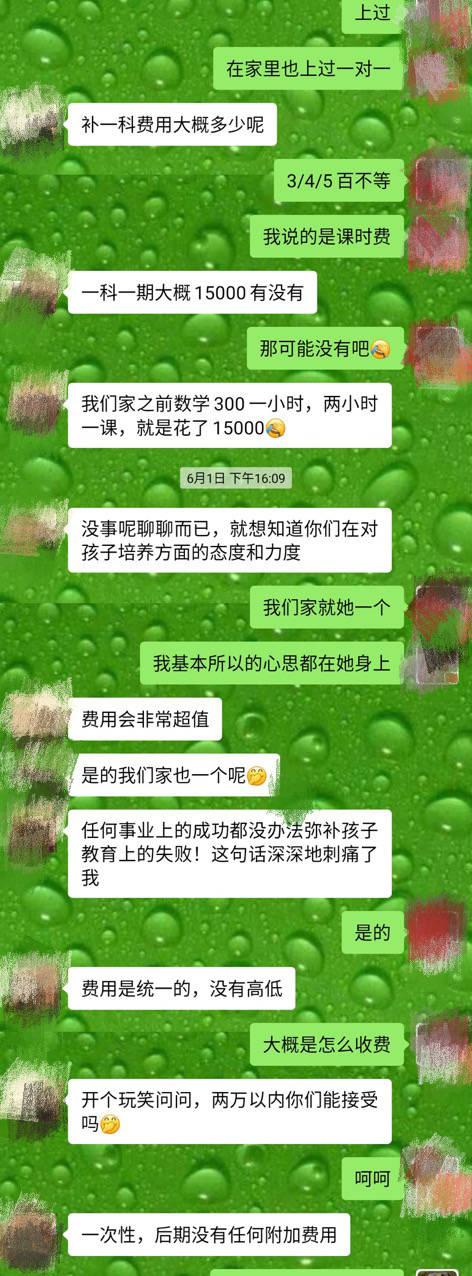 钟先生表示只要家长愿意配合老师的方法,百分百有效,袁女士便回复“一定全力配合”。但袁女士向记者表示,她当时并不清楚自己做父母的也要接受“教育”和上课。