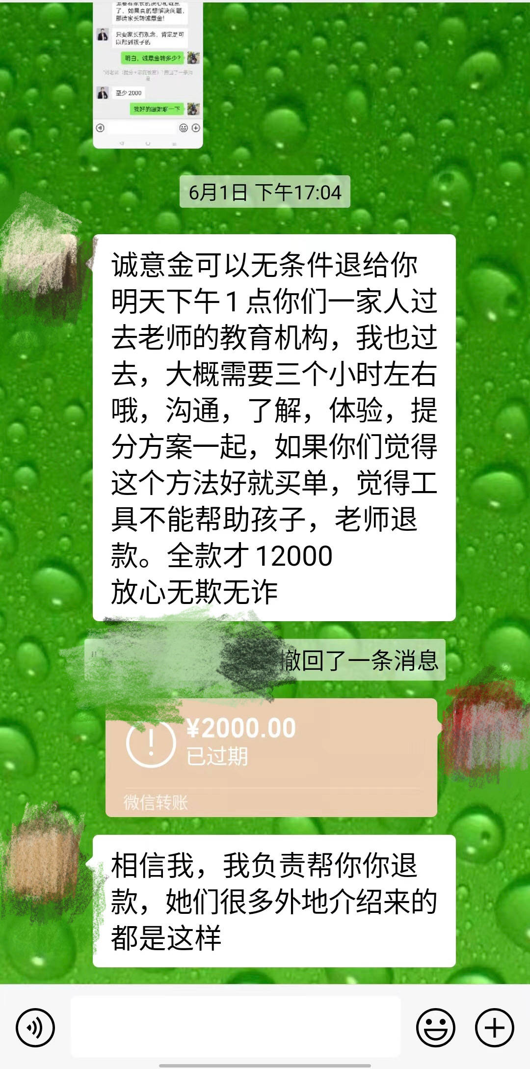 因与念高一的女儿多次沟通不畅,长沙的袁女士想给孩子找一位心理辅导老师,让第三方介入调解。今年6月经邻居介绍,袁女士来到“分之道爱成教育全国运营中心”,一位钟姓业务员向她表示,可以给孩子做心理疏导,还能提高学习成绩,只要一次性缴费1万2千元,若觉得无法帮助孩子,可以退款。