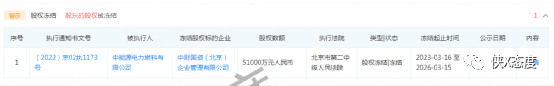 然而,据企查查公示信息显示该公司的大股东中财国资(北京)企业管理有限公司存在股权冻结。