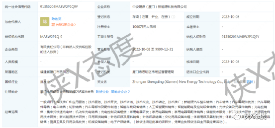 经查,中安晟鼎(厦门)新能源科技有限公司成立于2022年10月8日,法定代表人陈连英,监事李立国,大股东中财国资(北京)企业管理有限公司,注册资本1000万元,实缴0元,参保人数0人。