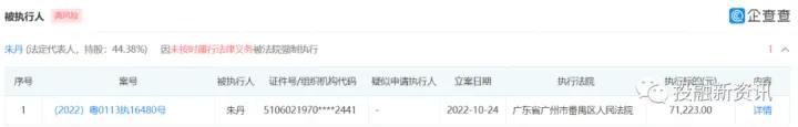 值得一提的是,七亩地的法人代表朱丹在2022年10月24日曾因“未按时履行法律义务”被广东省广州市番禺区人民法院执行71223元。