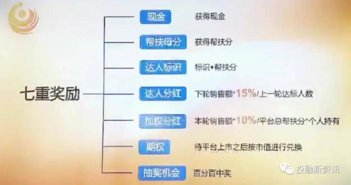 据推广资料显示,七亩地平台共设立了七重奖励:现金、帮扶母分、达人标识、达人分红、加权分红、期权、抽奖机会。