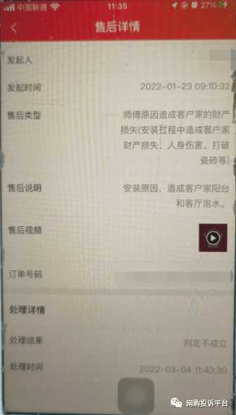 日前,江苏省的刘先生向“电诉宝”投诉称自己于2022年1月10日接了一个安装订单,客户投诉漏水,经过再次上门勘察和给平台反馈,不能完全判定是安装的责任,但听平台客服的口气,是要安抚客户,需要作一点处罚,暂时冻结现金账户,不让提现。