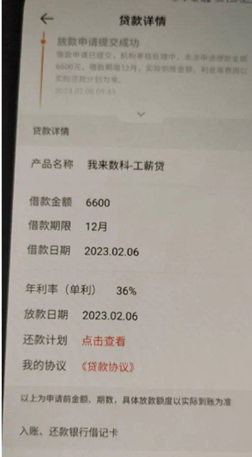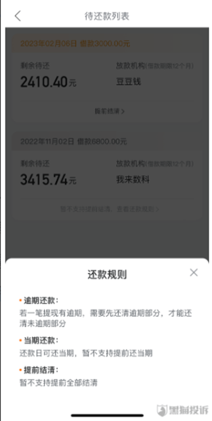 有借款人投诉称,他在哈啰借钱页面的我来数科上申请到一笔贷款,资金方为无锡锡商银行,借款本金6800元,分12期还款。不久该借款人资金宽裕,想一次性还款,但却找不到提前结清入口。询问我来数科后被告知,不支持提前结清。该借款人称,其他平台都支持提前结清,我来数科这样做属于霸王条款,他怀疑是因为贷款利率高(这笔贷款年化利率36%),所以平台不想让借款人提前还。