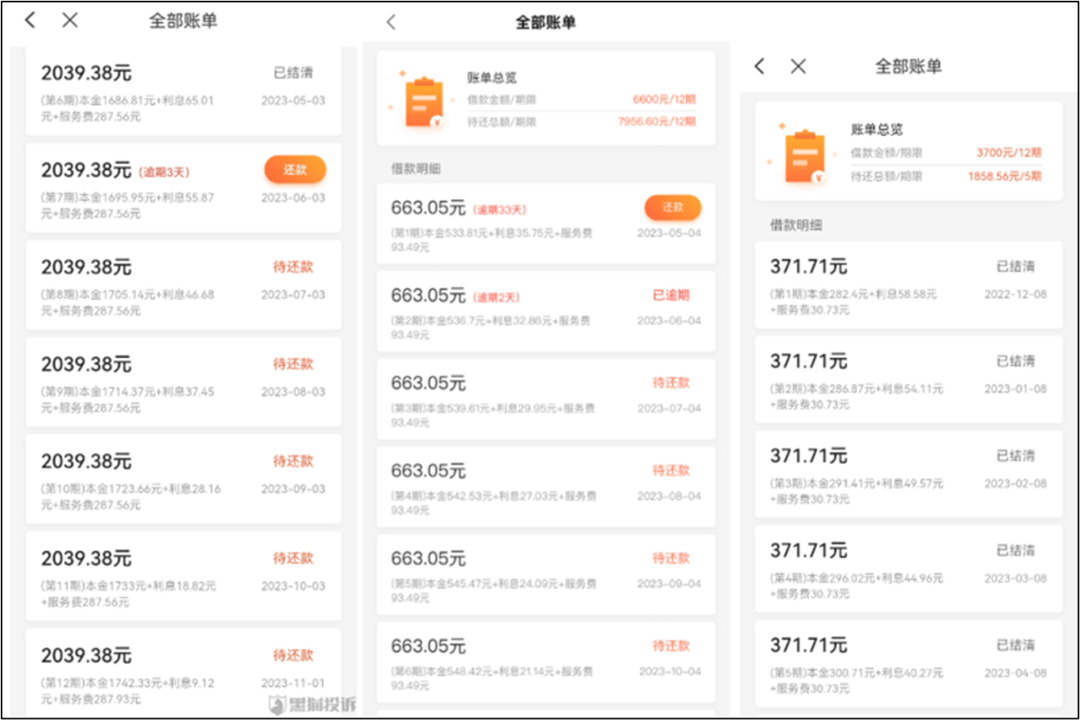 部分我来贷平台的借款人贴出的还款费用明细。