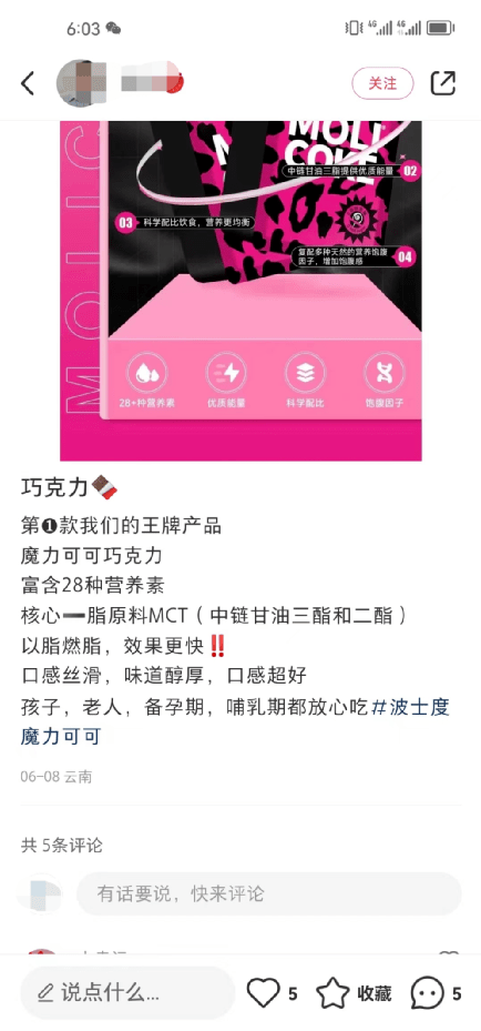 不止是在某音,我们能看见魔力可可的推广者发布公告,在朋友圈以及小红书,微博,百度端,我们都能看见魔力可可的广告,不过奇怪的是,魔力可可的相关搜索词却出现“魔力可可智商税”“魔力可可骗人”“魔力可可传销”等词条,进入相关搜索词条以后,才知道原来魔力可可巧克力此前被不少媒体曝光涉嫌传销。