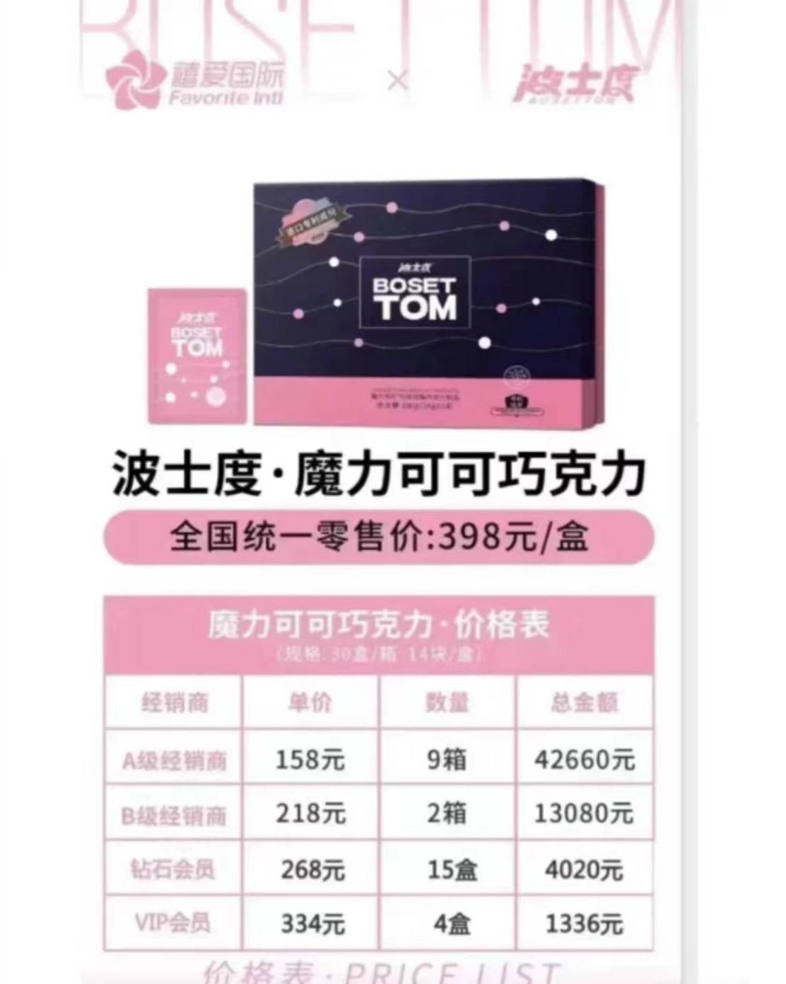 然而,想要加入其中,花费6540元购买一箱巧克力只是最低标准。交纳44660元成为A级经销商,才会被团长“正眼瞧一瞧”。