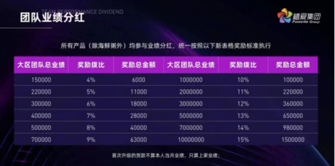 完成团队总业绩后,还会按照比例进行奖励。