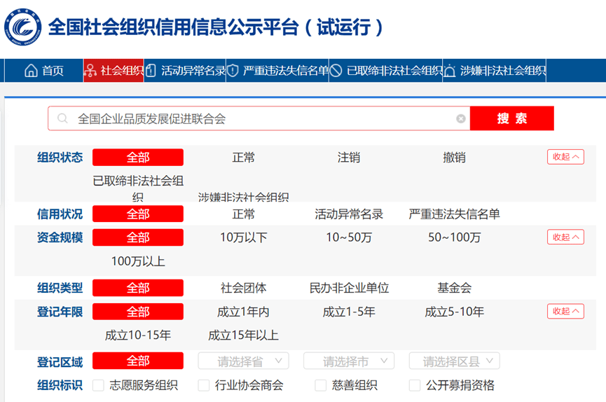记者通过仔细观察发现,上述五花八门,令人眼花缭乱的标牌,授牌单位均为“中国优质企业调研评价委员会”及“全国企业品质发展促进联合会”,通过查询发现,上述机构既没有工商注册信息也在全国社会组织信用信息公示平台无法查询,纯属山寨机构,没有任何公信力。