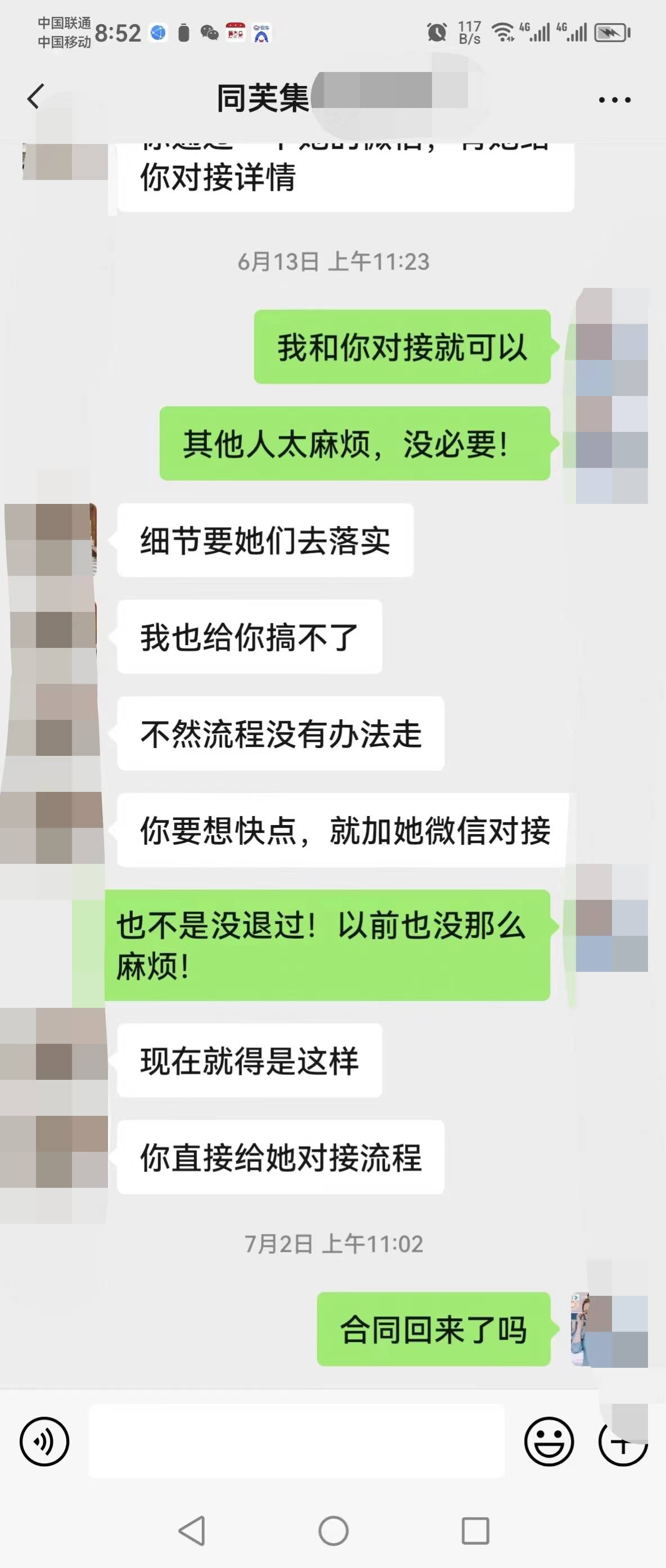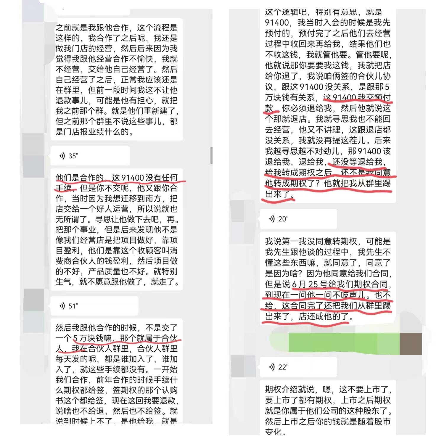 而当郝女士想要解除合约退还该款项时,对方表示:集团现在马上就要上市,该款项被转换成了集团原始股。但是最后郝女士却发现,在“同芙集团”重新注册的新公司中,作为美容院原老板的她被踢出了公司群聊,被强制转换的原始股份和分红也并没有任何手续合同甚至文件说明,这样一来,不但郝女士的钱无法退还,甚至连店都成了别人的。