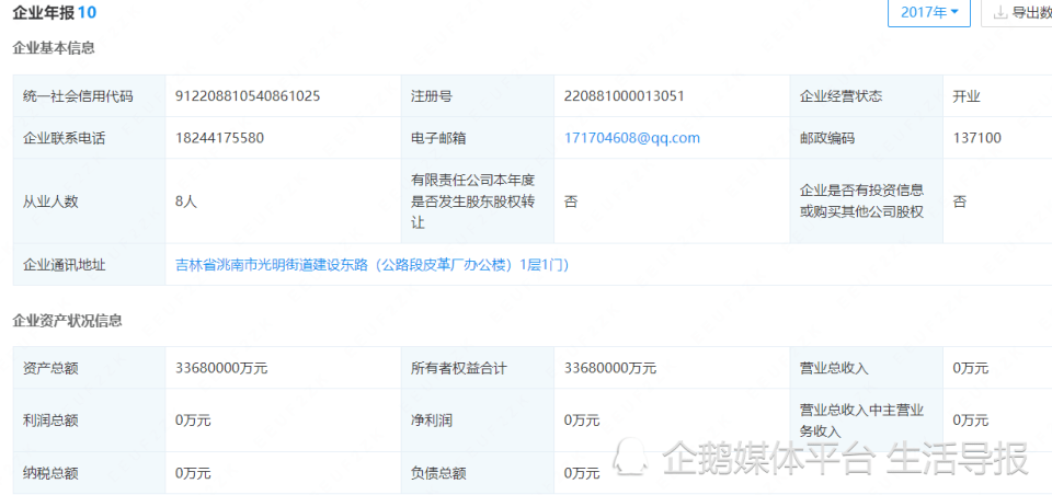 据悉,洮南市天隆农产品有限公司成立于2009年1月16日,注册资金为8000万,实际缴纳资金仅为500万,股东为孙敬丰(大股东、法人、实际控制人持股55.6125%、是最终受益人)、孙敬国(最终受益人、监事、持股44.3875%)。此外,该公司参保人数为0,2020年年报显示,公司的资产总额为405.65万元、所有者权益376.82万元,其他营业总收入、利润总额、净利润、营业总收入中主营业务收入、纳税总额均为0。负债总额28.83万元。