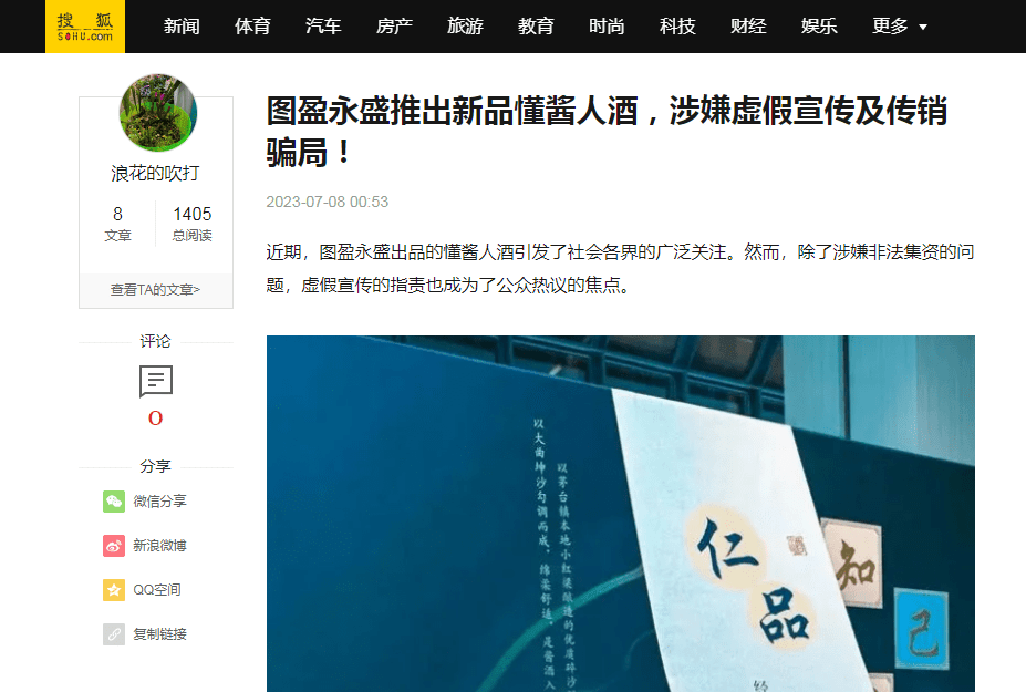 网传图盈集团旗下“懂酱人酒”涉嫌传销、虚假宣传和非法集资