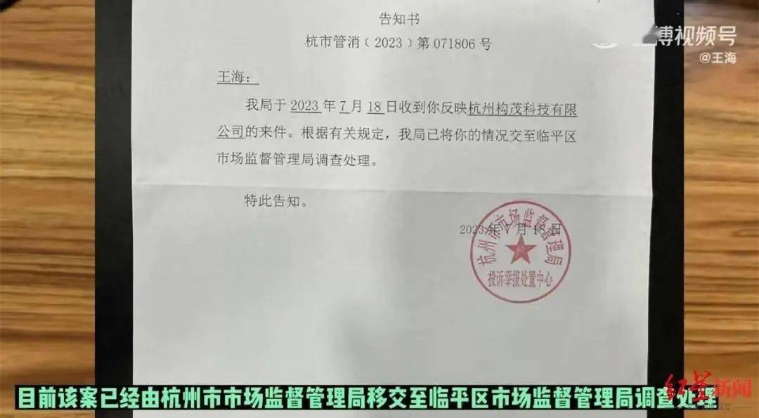 王海在微博中称,“对两批次产品检测都检出有毒有害物质邻苯二甲酸二丁酯,目前,该案已经由杭州市市场监督管理局移交至临平区市场监督管理局调查处理。”