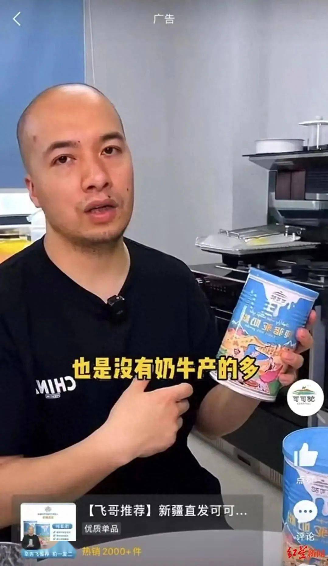 网红辛吉飞为可可驼纯骆驼奶粉做推介。图源:视频截图
