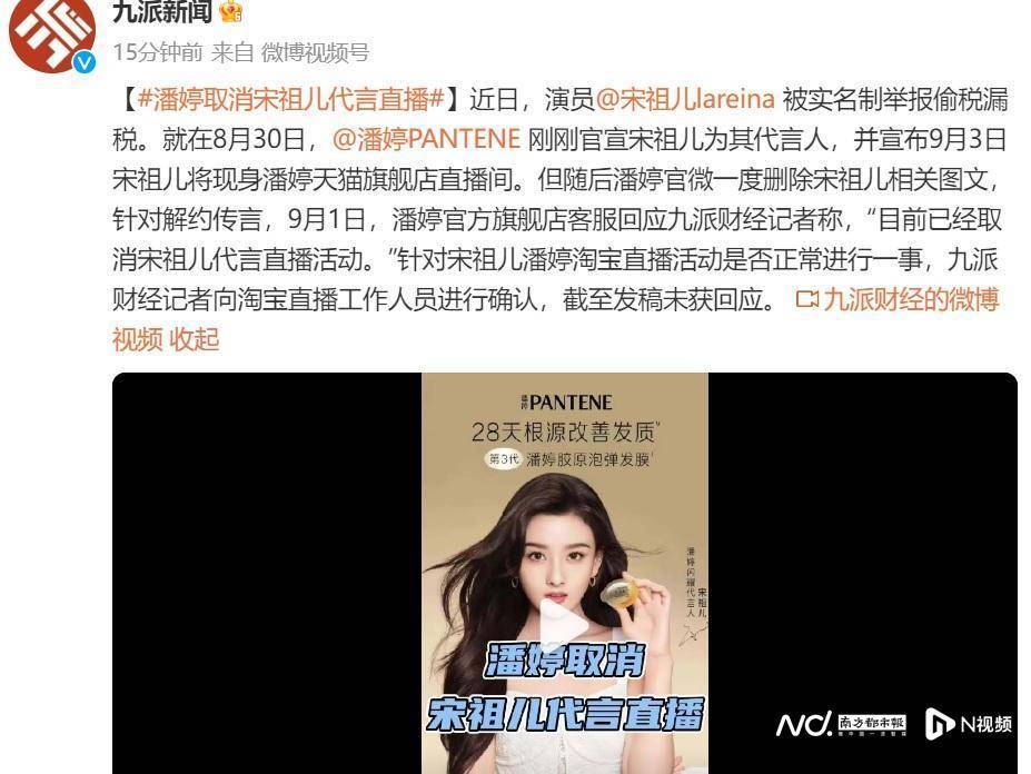 各大卫视删除宋祖儿相关微博:潘婷淘宝代言直播被曝取消