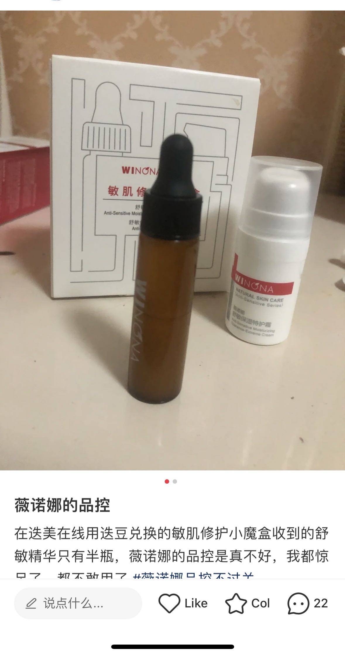 在小红书上有不少网友反应薇诺娜的品控问题,其中就有未开封产品容量明显不足的前述情况。