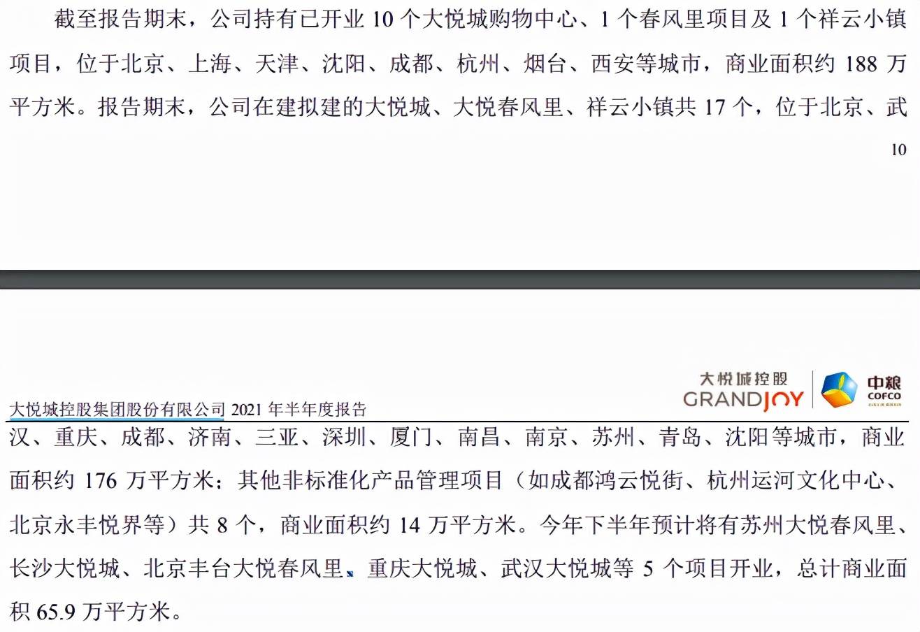 公开资料显示,大悦城是一家全国性、综合性的房地产开发上市企业,总部位于深圳市,主要从事房地产开发、经营、销售、出租及管理住宅、商用物业等业务,现已开业10个大悦城购物中心、1个春风里项目及1个祥云小镇项目。