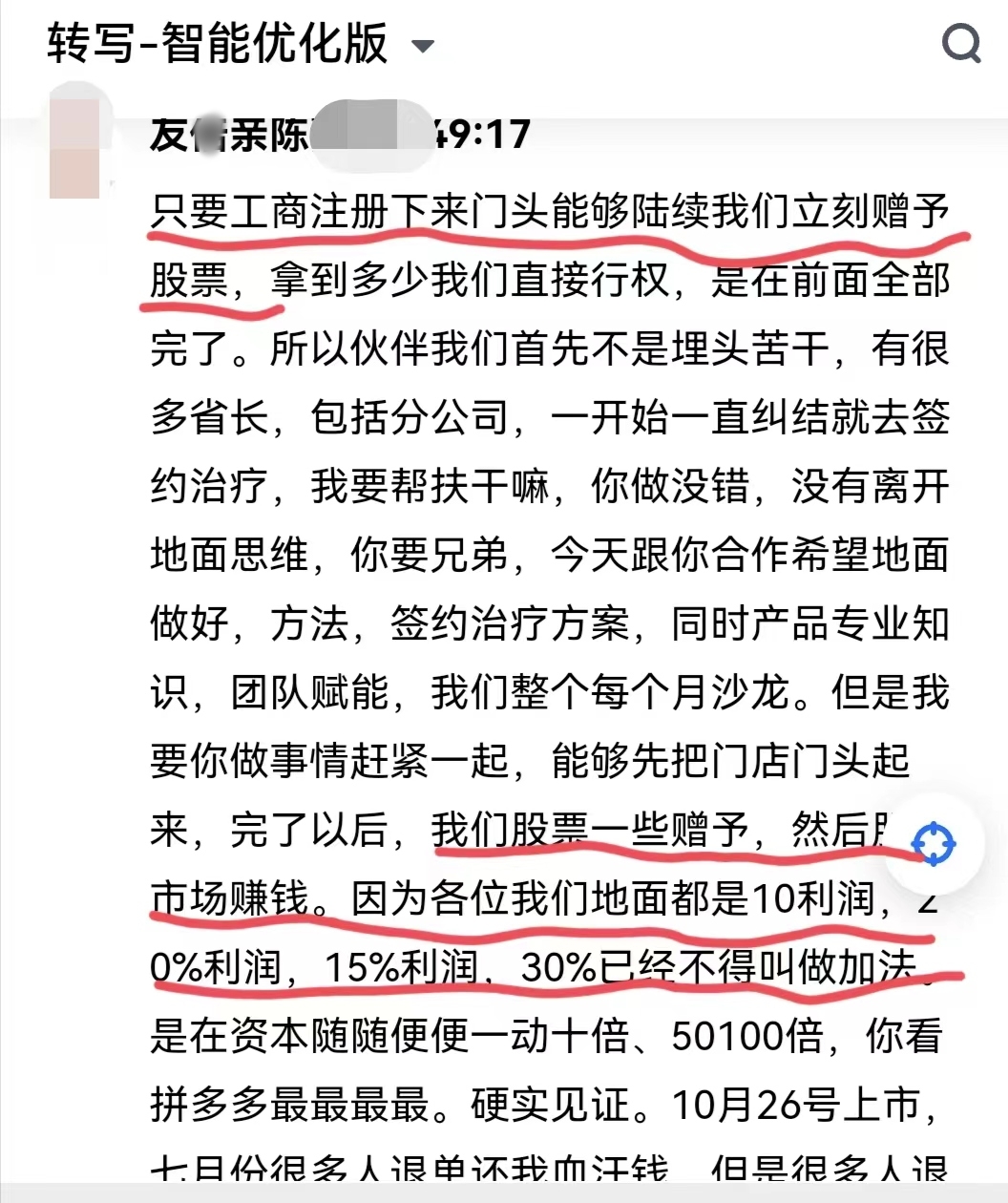 “友某亲”以即将上市为由,大力推广线下门店,并宣称由公司提供一系列的扶持政策。