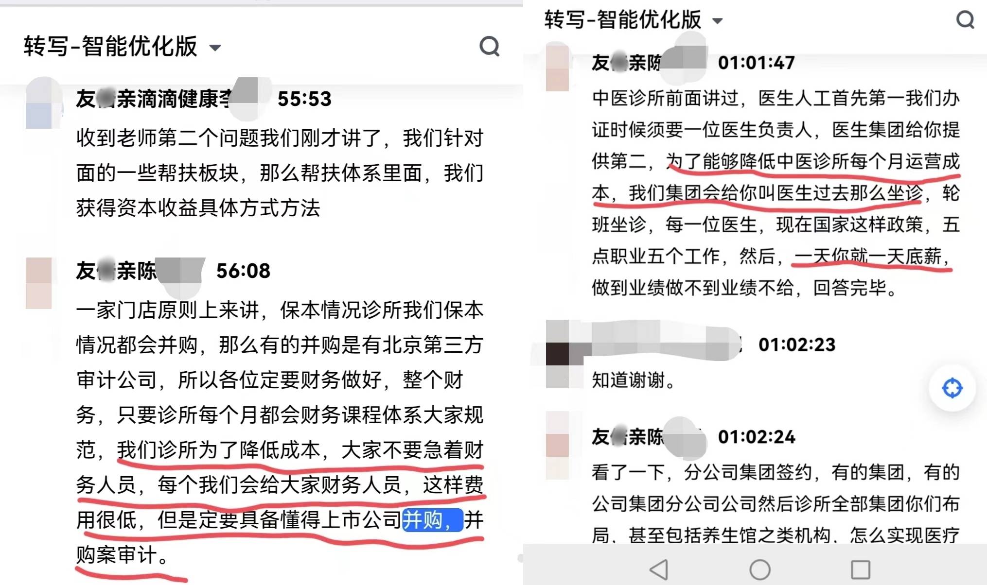 同时,为了节约合伙人成本,公司设有一支专业的医疗团队,承诺各门店医疗人员均由集团统一派遣轮流坐诊,合伙人只需要支付当天的底薪即可。并且,为了完成并购上市,公司还会统一配备财务人员,既可以降低人员成本费用,还可以帮助门店完成各类财务报表。