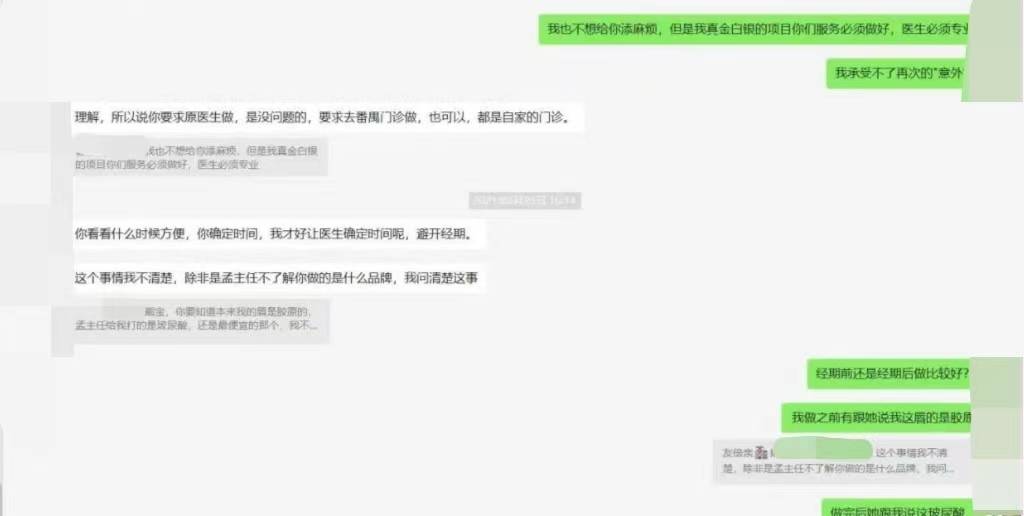 但是王先生通过其中一位合伙人李女士那里了解到,李女士每次在“友某亲”经“陈某”和“宋某”操作的做医美项目都会出问题,甚至聘用有案底的医生做手术,原本承诺用胶原美唇的项目被替换成了最便宜的玻尿酸,导致李女士现在的嘴唇都是歪的。