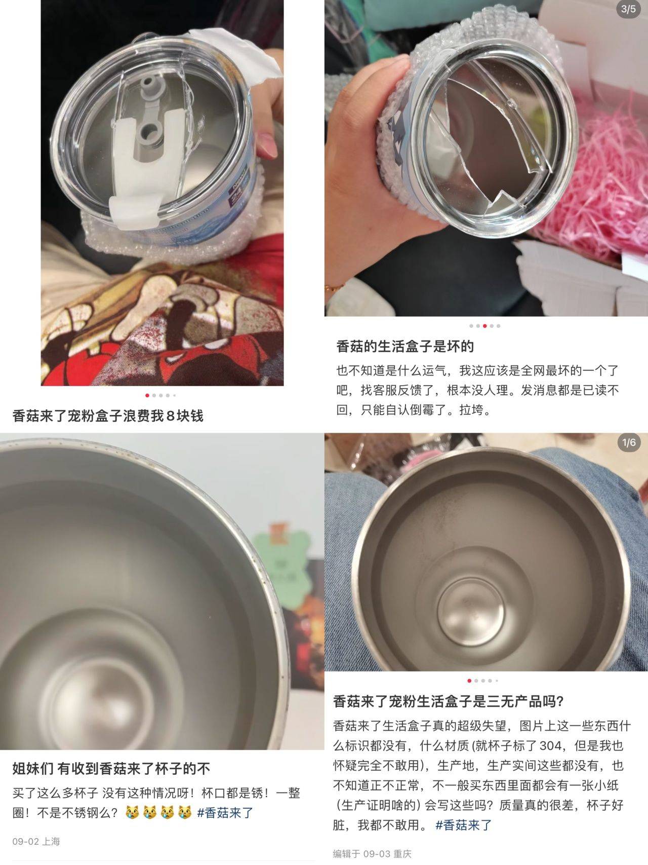 据了解,大多数消费者是奔着900毫升的冰霸杯购买了生活盒子,但收到实物却不尽如人意。有部分消费者反馈,其收到的冰霸杯或有水垢,或生锈,或刮痕,其余产品看起来较为劣质。甚至有消费者担心冰霸杯的质量问题,为其购买了“不锈钢检测液”进行检测。