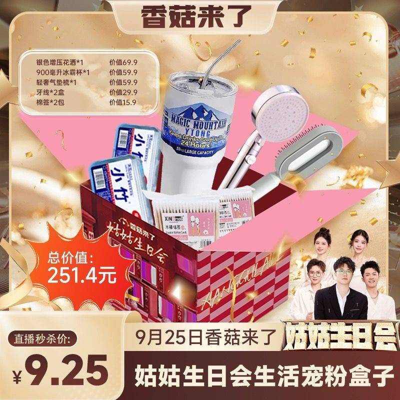 尽管吐槽声和质疑铺天盖地,但也丝毫不影响香菇来了直播间持续“吸金”。9月25日,该直播间以姑姑生日会为由再次推出宠粉盒子,此次仅推出了生活宠粉盒子、健康宠粉盒子。记者留意到,此次推出的宠粉盒子与粉丝嘉年华活动所推出的产品几无区别,其宣称的总价值均为200多元,最终成交价为9.25元。