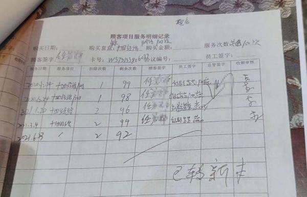 在与哥哥的反复沟通中,任阿姨总算为帮忙君理清了事情的来龙去脉。2019年11月,任阿姨的哥哥先是在文峰宛平店办了张1000元的美发卡,可还没等钱用完,一名叫“莹莹”的店员又让任阿姨的哥哥充值了5000元。眼见老人“手头宽裕”,美容部经理周蕊蕊和李琴用一番番口若悬河的“话术操作”,让所谓的“笨爷叔”稀里糊涂地敞开了“钱袋子”。