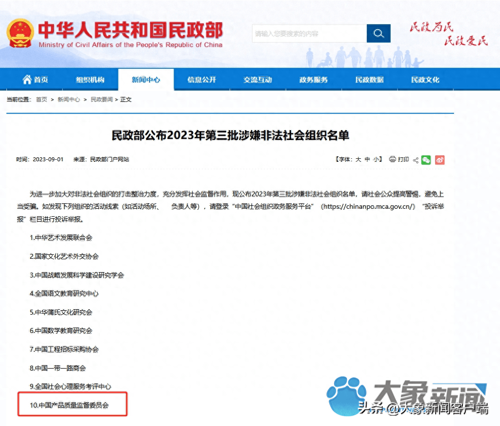 10月17日,当记者再次拨打该电话,却传来“空号”的提示。记者从民政部网站查询到,今年9月1日,民政部公布2023年第三批涉嫌非法社会组织名单,中国产品质量监督委员会赫然在列。记者在普乐电商归属方天津和则百顺国际贸易有限公司看到,公司大门紧闭,办公区域空无一人,贵重物品已全部搬走。