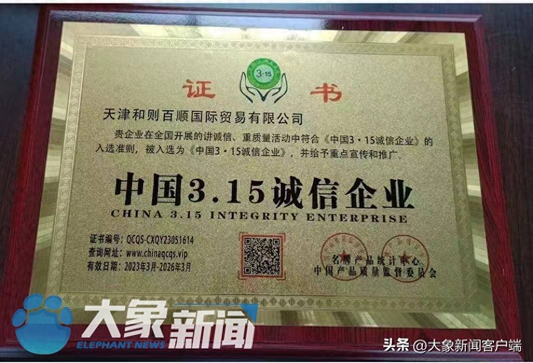 让张庆夫妇陷入圈套的除了公司的各种资质,还有一系列的荣誉证书。其中,一张由中国产品质量监督委员会颁发的“中国315诚信企业”证书,让张庆夫妇深信不疑。“我还专门在网上查到了一个’400’开头的颁发机构电话号,打过去对方说这是家诚信企业。”