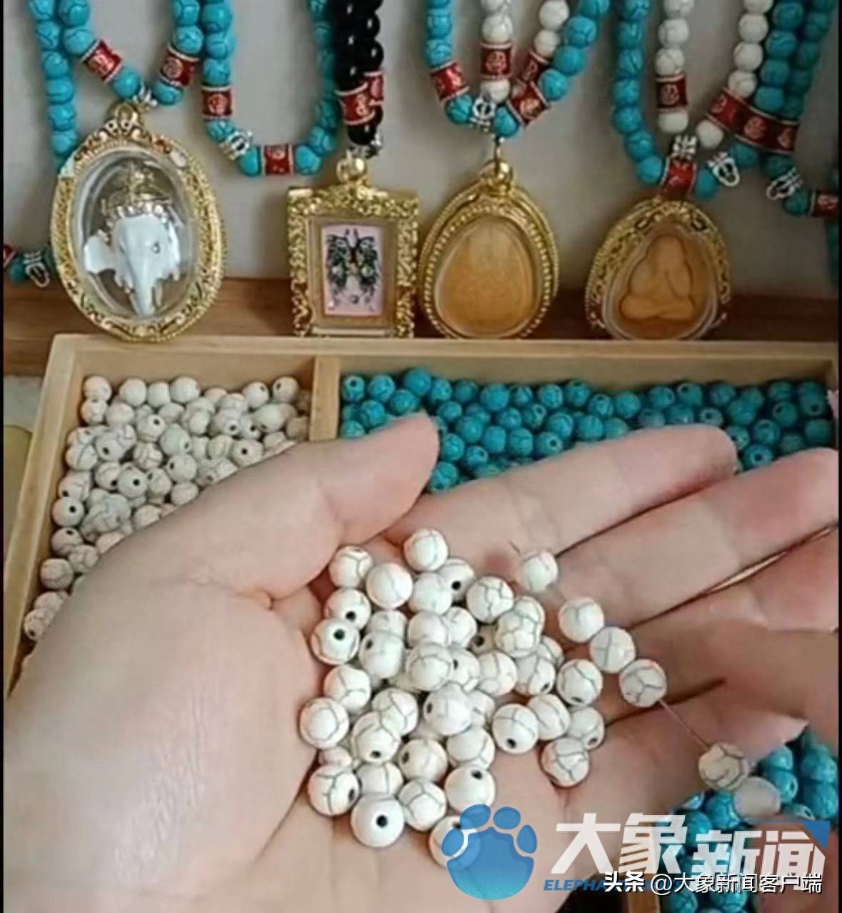张庆告诉大象新闻记者,他和爱人原来都是靠送快递维持生计。在“入坑”普乐开始串珠后,二人辞掉了工作,“串珠赚钱”成了他们唯一的收入来源。