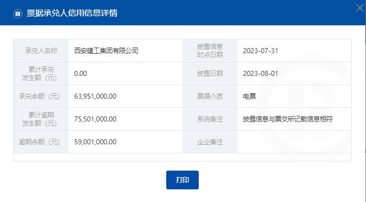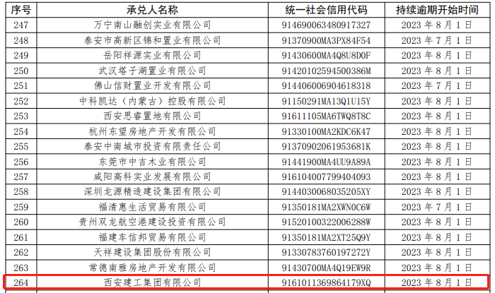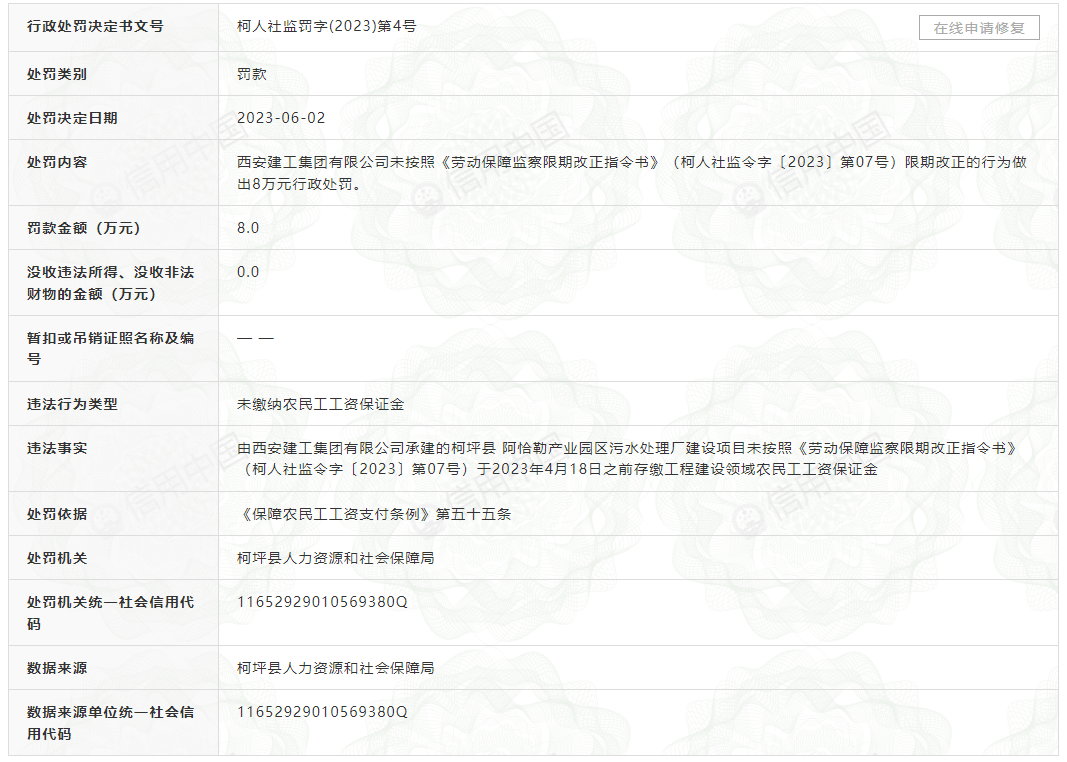 西安建工集团商票持续逾期被公示 曾因未缴工资保证金被罚