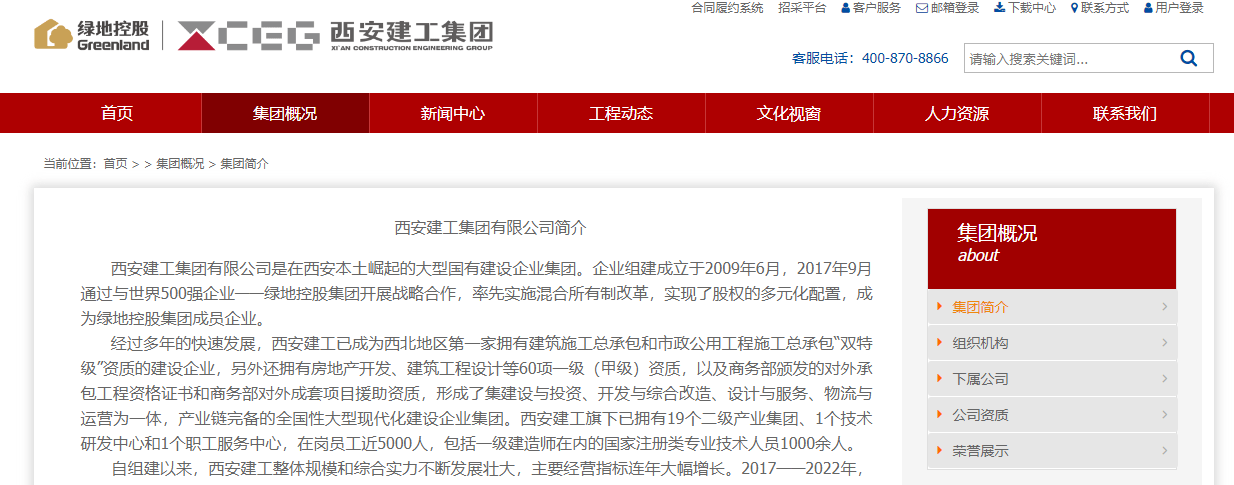 公开资料显示,西安建工集团有限公司是在西安本土崛起的大型国有建设企业集团。企业组建成立于2009年6月,2017年9月通过与世界500强企业——绿地控股集团开展战略合作,率先实施混合所有制改革,实现了股权的多元化配置,成为绿地控股集团成员企业。