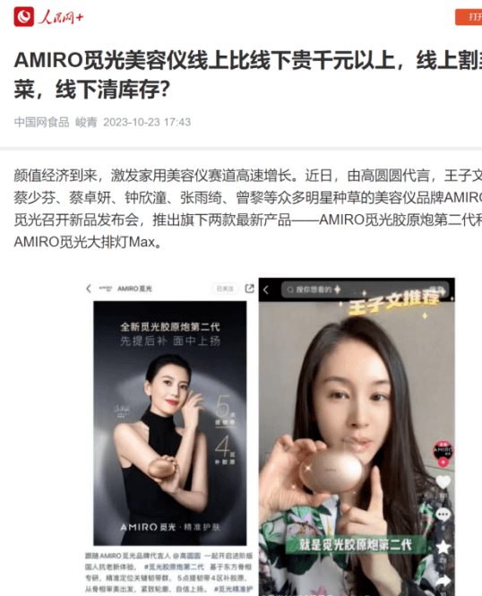 近期,人民网、中国消费者杂志社、中国网等多个知名媒体及短视频平台都在报道AMIRO觅光美容仪“割韭菜”事件。